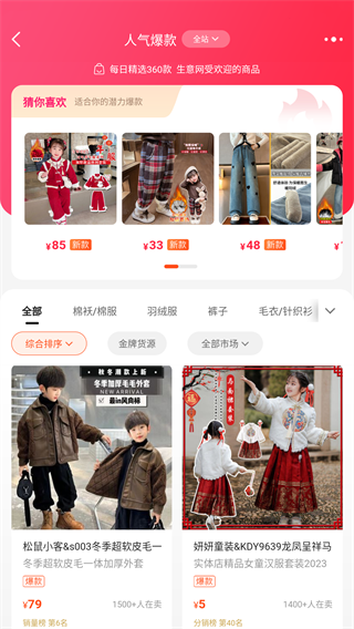 生意网童装货源APP提供了一站式服务,包括询价、下单、支付、发货等,你可以通过平台直接与供应商沟通和交易,简化采购流程,提高效率和效益,同时还汇集了各大电商平台爆款商品,助你及时了解市场动向和竞争情况。