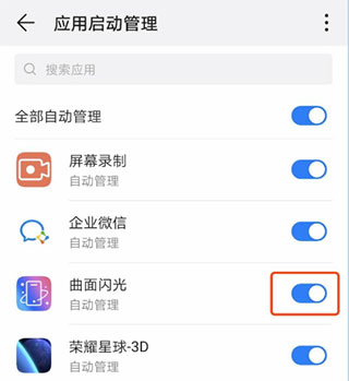 因为默认情况下,曲面闪光程序进入后台以后,会被操作系统清理掉,这个时候程序都没有在运行了,当然不会闪光了。为了避免这种情况,需要把曲面闪光放到自动运行的后台白名单中,因为安卓手机型号众多,不同的手机放入自动运行的方法各不一样,这里以华为手机为例举例说明: