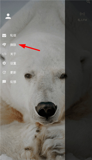 1、打开倒带音乐播放器,点击左上角的横杠,然后选择“换肤”。