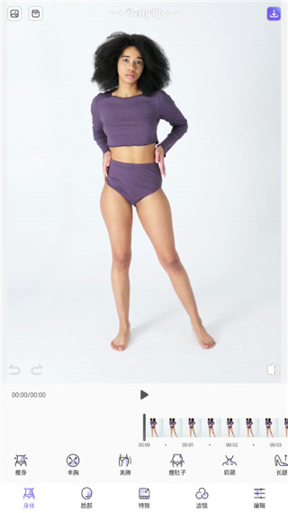1、一秒拥有纤细的腰部,大长腿和光滑动人的皮肤,身体和脸部编辑效果自然出彩;