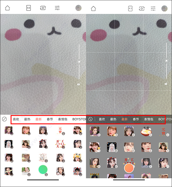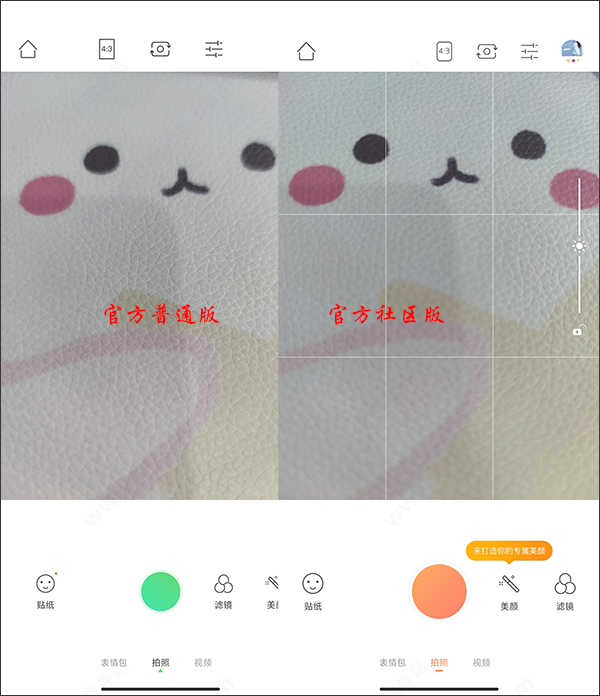 2、不过美颜相机功能都是一样的,都提供了表情包、拍照、视频等功能;