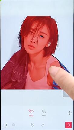3、在画笔状态下,我们可以用手指在画面上涂抹,被选中成为红色的部分即会被抠出来,成为前景。