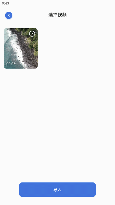 2、进入相册,选择本地视频文件,点击“导入”;