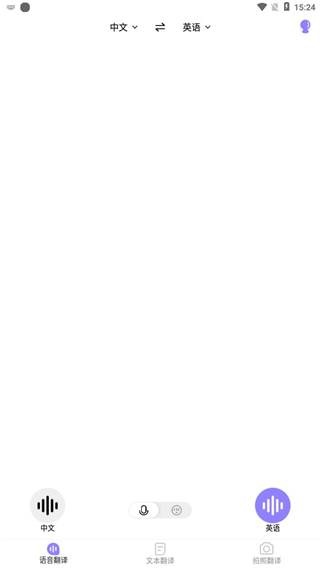2、软件为用户提供了语音翻译功能,用户按住话筒说话即可实时翻译,还可以切换语言,非常的方便。