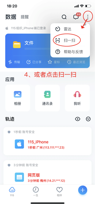 5、或是直接通过右上角的扫一扫,扫描115大屏版二维码登录。