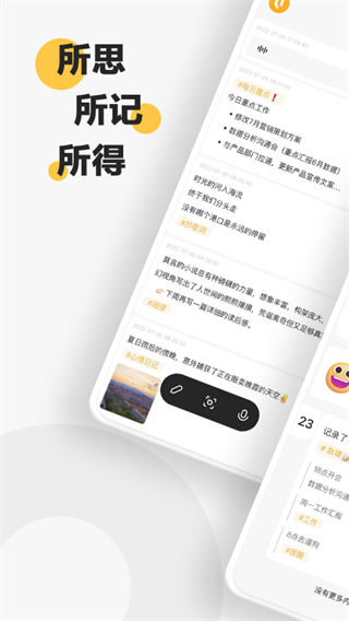 文字输入:手动输入文字或添加图片来快速记录一条图文轻记;