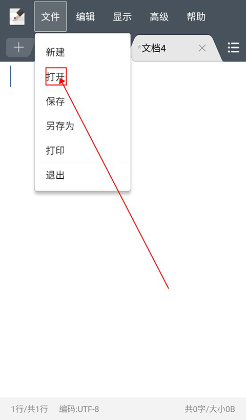 1、用户如果想要导入自己已有的文档,可以点击左上角的“文件”,选择“打开”。