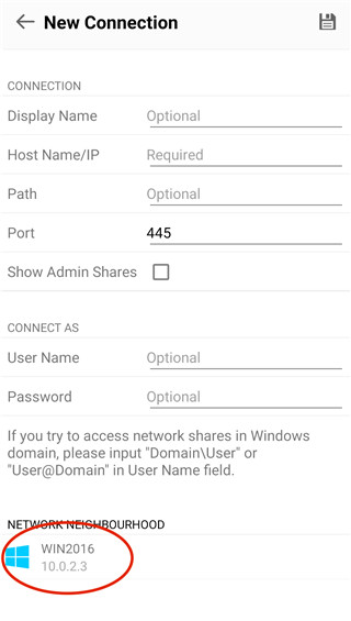 2、在电脑上设置好共享文件夹后,您可以在安卓手机上创建连接了。