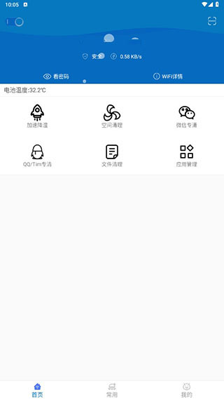用户进入软件之后,会进入到首页,首页内有许多功能可以使用,比如加速降温、空间清理、文件清理等等。