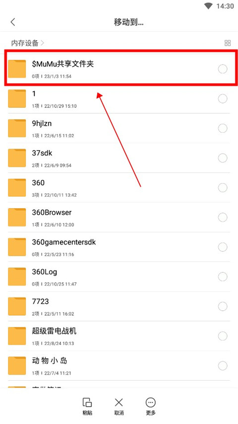 3、然后选择要移动的位置,比如这次选择移动到手机本地的文件。