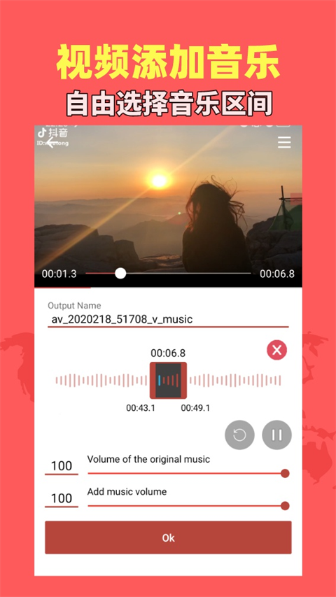 4、自定音乐:为视频快速添加你独特的背景音乐,改变风格!