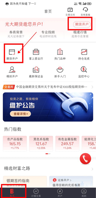 1、下载光大期货e开户,点击首页“期货开户”;