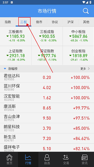 除了行情页,在资讯页也可以查看新三板的各种资讯信息,了解新三板的行情。