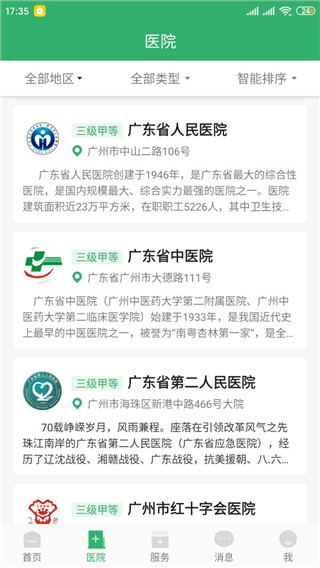 3、点击医院,可以查看目前所在地区可以预约挂号的医院。