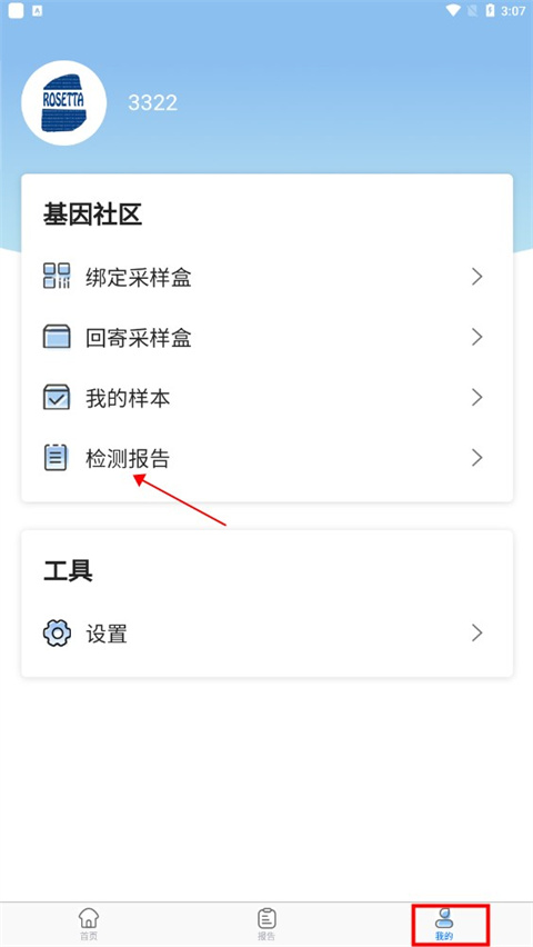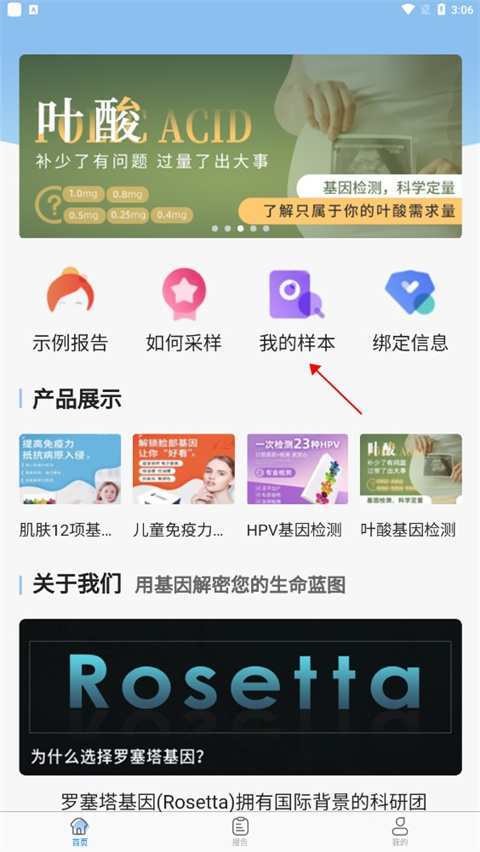 1、首先进入罗塞塔基因APP,点击我的样本;