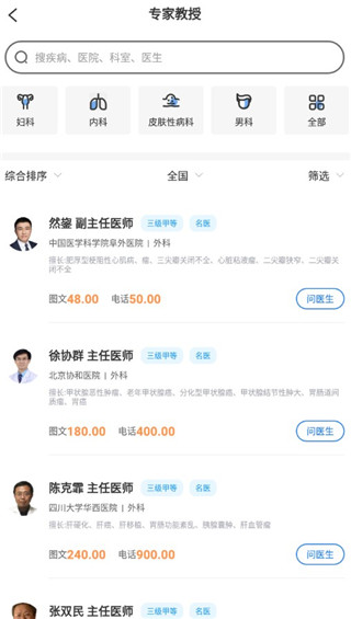 聚合全国上千个优质三甲医院的50w+名医,为用户提供全面的医疗健康服务,电话咨询、线上问诊,找到最适合你的专家好医生。
