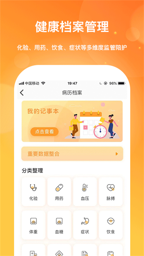 2、化验、用药、血压、饮食、症状五大维度全程管理;