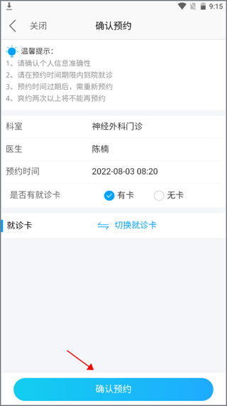 6、选好预约的时间后,选择要就诊的人,最后点击“确认预约”。