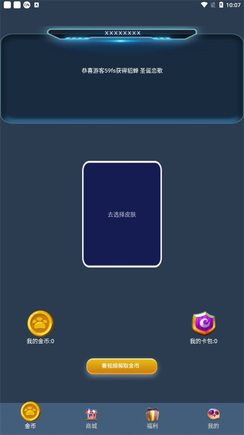3、选择成功目标以后,接下来我们要做的就是通过看视频广告来赚取金币,用金币去抽皮肤卡碎片。