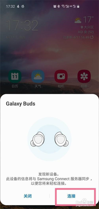 第四步:在弹出窗口中点击“连接”。Galaxy Wearable应用程序将启动;
