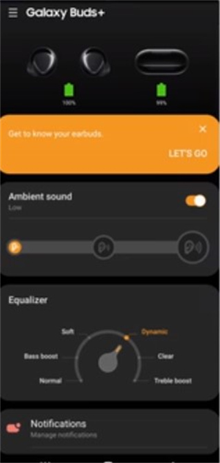 第六步:现在,您将在Galaxy Wearable应用中看到有关buds+的信息和设置控制;