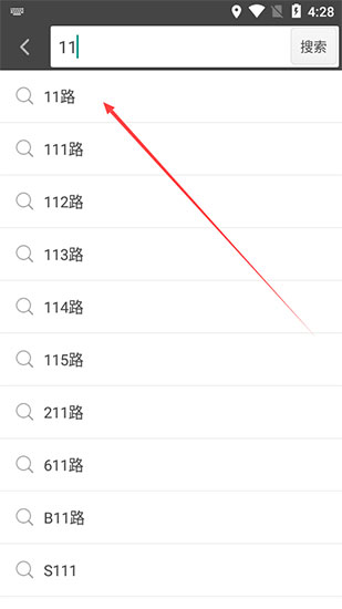 1、在搜索界面中输入想要搜索的公交线路,这里以11路为例。