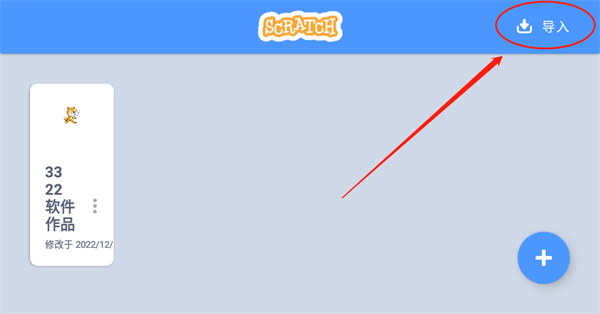 1、进入scratch软件后,点击主界面中的【导入】。