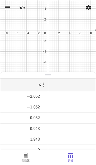 使用表格区按钮打开表格区,如果你激活了函数的数值表,则可以在这里(表格区)找到指定范围内的数值表。