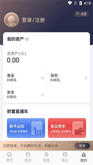 5、在我的板块中可以查看到所有的资产,不过在这之前我们需要进行登入;