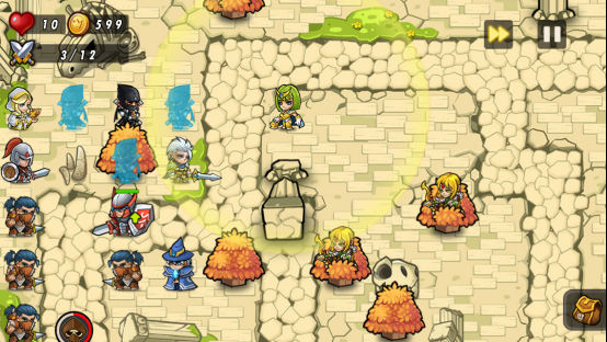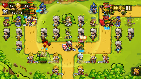 初始阵型:中级的减速法师比初级强不少,优先升·好,一个卫士是必要的,前期放3个小偷可以让经济更快,然后随意找两棵树蹲好弓箭手就行了