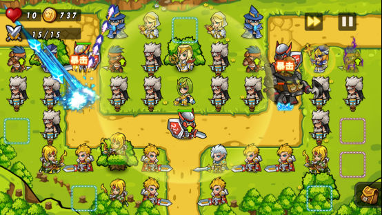 《塔防之光》是工头网络的全新力作,之前的《塔防之巅》与《塔防世纪》均获得不错的口碑,深得塔防爱好者的喜爱。这次的《塔防之光》延续前两作的世界观,以中世纪剑与魔法为题材,吸收前两作的优点,最终呈现出质量优乘塔防游戏。游戏的表面玩法门槛极低,玩家只需要在怪兽前进的道路上设置种类不同的兵种,利用不同兵种之间的配合,将敌人阻挡在基地门外即可。但进阶玩法却值得研究,比如说玩家可以利用地形,部署重锤军士,一锤将敌人退下万丈深渊;弓箭手也可以爬到树上登高望远,攻击距离会成倍增加之类可以研究的小细节。