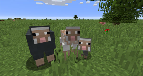 它从哪来?它无处不在,只要有充足的阳光与草地,羊就会像其他动物一样悄悄地生成在你的身旁,一般来说,羊都是白色的,但偶尔也会生成一些长着其他颜色羊毛的羊,比如说黑色、灰色的羊,因此,如果你手头上一时没有采集羊毛的工具,或者腹中空空,大可以抓几只野羊来——反正它们总会再出现的。