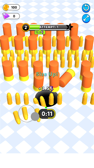 1、在本站下载并安装游戏后,点击屏幕即可进入游戏,游戏的操作很简单,只需通过划动屏幕即可控制黑洞的移动方向