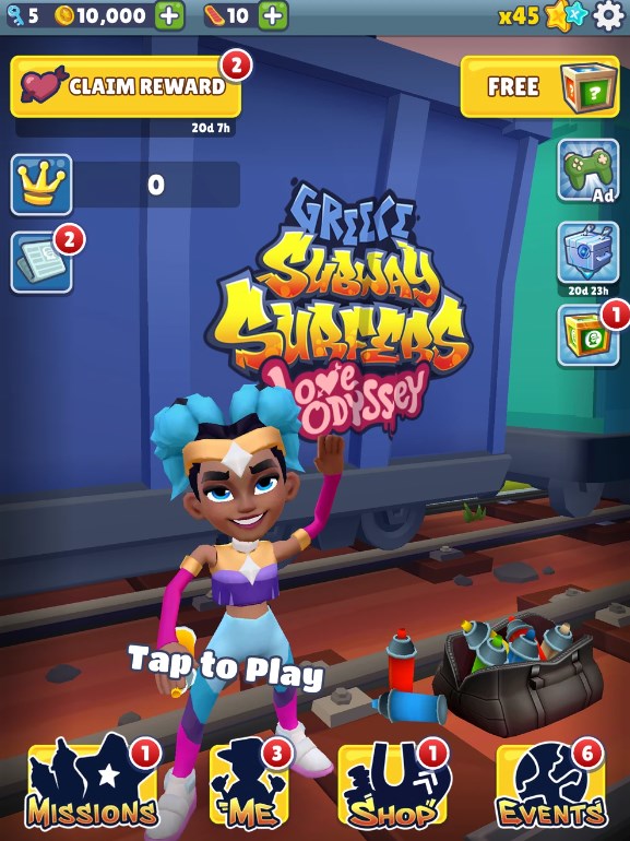 地铁跑酷希腊版本带你开启一场环球之旅,希腊地图、全新角色、炫酷玩法等你来探索!这是一场引人瞩目的冒险之旅,也是《地铁跑酷》系列的第177次世界巡回赛,第182个版本。本次巡回赛将带你进入“希腊之爱奥德赛”,探索迷人的希腊神话之地。