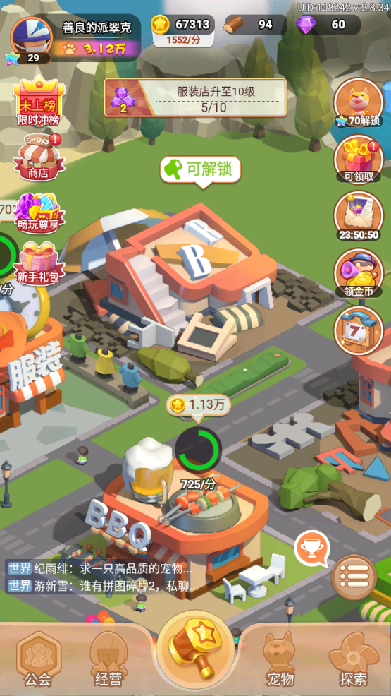 1、新玩家进入游戏需要解锁场景商店进行营业