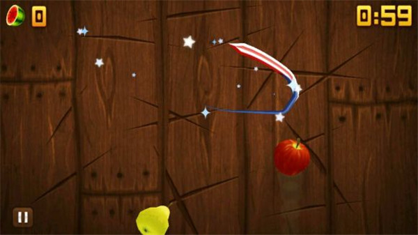 特效:在街机和禅境模式中会使水果额外反弹一次(说白了,就是没有切到的水果再重新抛一次。)