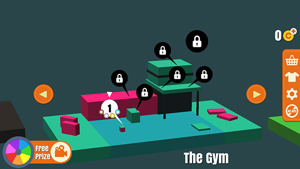 1、首先打开空翻魔术师游戏,游戏分为gym、mountain、city、funhouse等多种情景模式,随着不断通关,你可以解锁更多的场景和关卡。首先打开已解锁的The Gym中的关卡。
