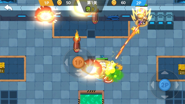 双人大作战2最新版中还会随机刷新各种道具,比如有补充血量的医疗包、威力无双的加特林武器,甚至还包括极速移动、武器弹药等等,这些工具在游戏中都可以很好的帮助你击败僵尸。不仅如此,游戏还为1P、2P设置了海量皮肤,战斗挑战过程中所有的资源均可实现共用,所以想要在休闲时找一个可以合作,可以对战的双人小游戏,这无疑是一项非常不错的选择。另外,游戏的关卡也特别的多,这也就意味着越往后难度就越大,给玩家带来的挑战性就更高。