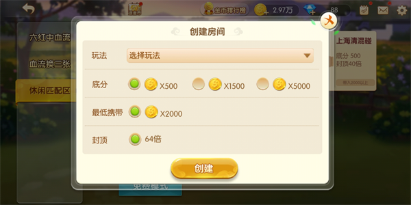 2、选择玩法及底分后即可创建成功,创建成功后就可以邀请好友一起玩耍了!