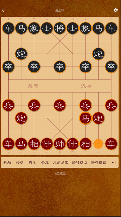 这样的走法也是比较稳的开局了,第一步起马既能看住自己的中卒防止对面的中炮打过来,又能使自己更快的出车!