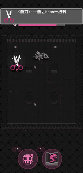 吃掉三个灰球,会随机在房间的任意位置生成出一个剪刀,吃下这个剪刀就会对BOSS造成伤害。