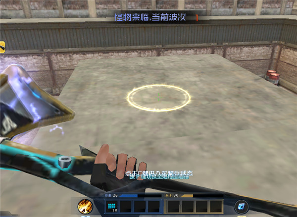 此时屏幕提示“按e键选择建造炮塔位置”,按下e键,鼠标变成淡黄色光圈,将光圈移动到你想要建造的位置,