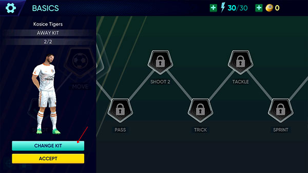 1、在本站下载安装好足球世界杯官方版后,打开进入选择自己的队员,点击“CHANGE KIT”就可以换装。