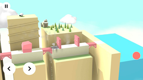 当出现障碍的时候,点击红色按钮隐藏这些障碍,我们才能安全走过去;当出现沟壑的时候,再次点击红色按钮,桥梁就会出现,我们就能安全走过桥。