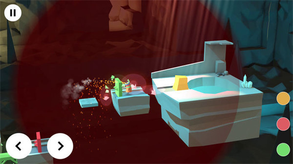当然,游戏想要获胜,仅仅通过谨慎的控制机关可不行,因为主角们在一定时间后就会爆炸,所以,时间限制也是考验大家的地方,需要快速完成通行挑战,才能安全的跳到大海中。