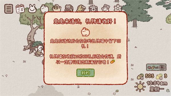 8、通过摆放装饰,不断完善小岛,吸引兔子来访哦!