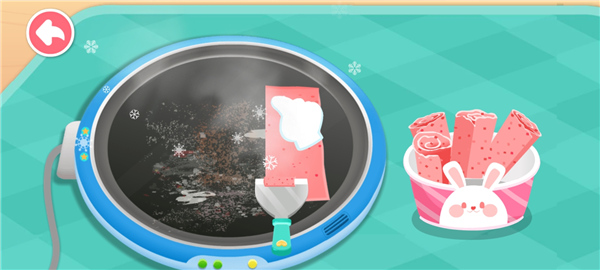 6、随后滑动屏幕中的铲子,对其翻炒,即可获得酸奶卷。