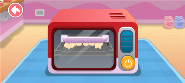 11、将这些面条印章放入烤箱中,点击开关,等待片刻。
