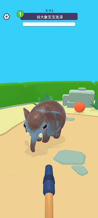 2、关卡2【给大象宝宝洗澡】,可以看到一只脏兮兮的小象和一个水管。