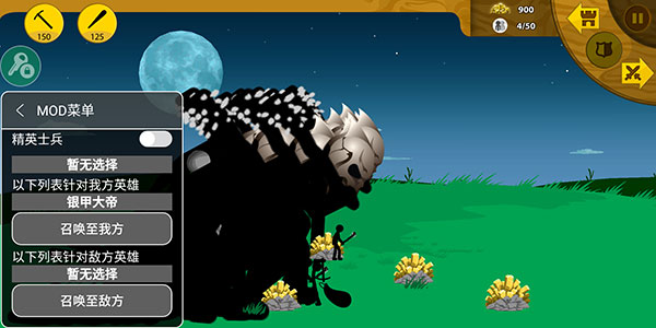 火柴人战争遗产银甲大帝版是一款非常讲究战术的策略放置手游,这里的银甲大帝由于翻译的原因也叫被做银角大王,是游戏中的一个强力兵种模组,由热心玩家自行制作。玩家可以通过游戏的内置MOD模组,实现无条件召唤银甲大帝,亲测有效。
